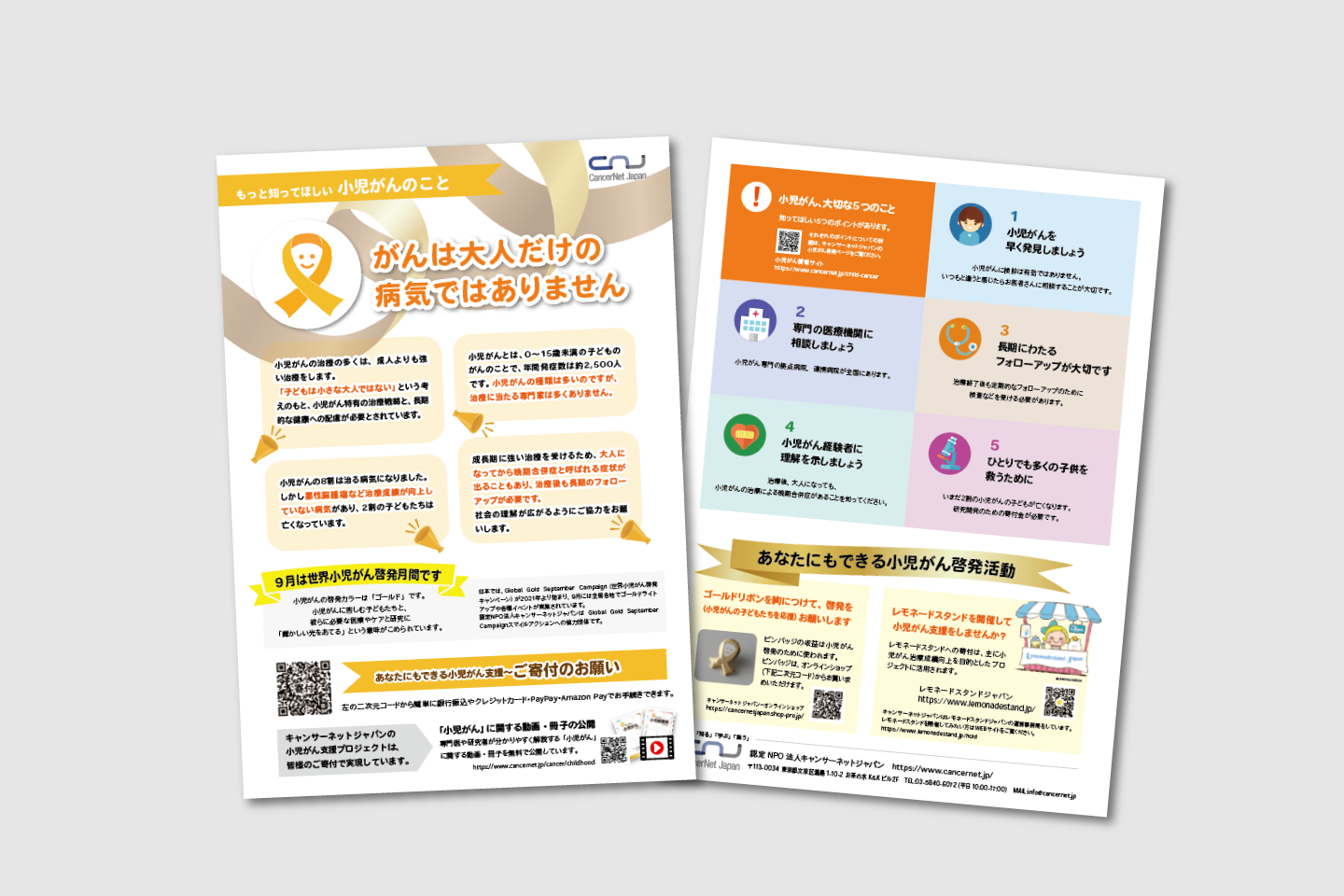 「小児がんの子どもたちのために」「克服した大人のために」