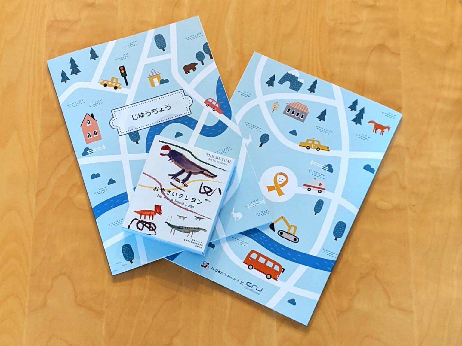 全国の小児がん拠点病院へ、自由帳(城南信用金庫提供)とお野菜クレヨン(富国生命提供)がプレゼントされました。信用金庫のキャラクター「しんちゃん」と、富国生命のキャラクター「キティちゃん」も、小児がん啓発バッジを付けて、ゴールドセプテンバーを啓発してくれました。